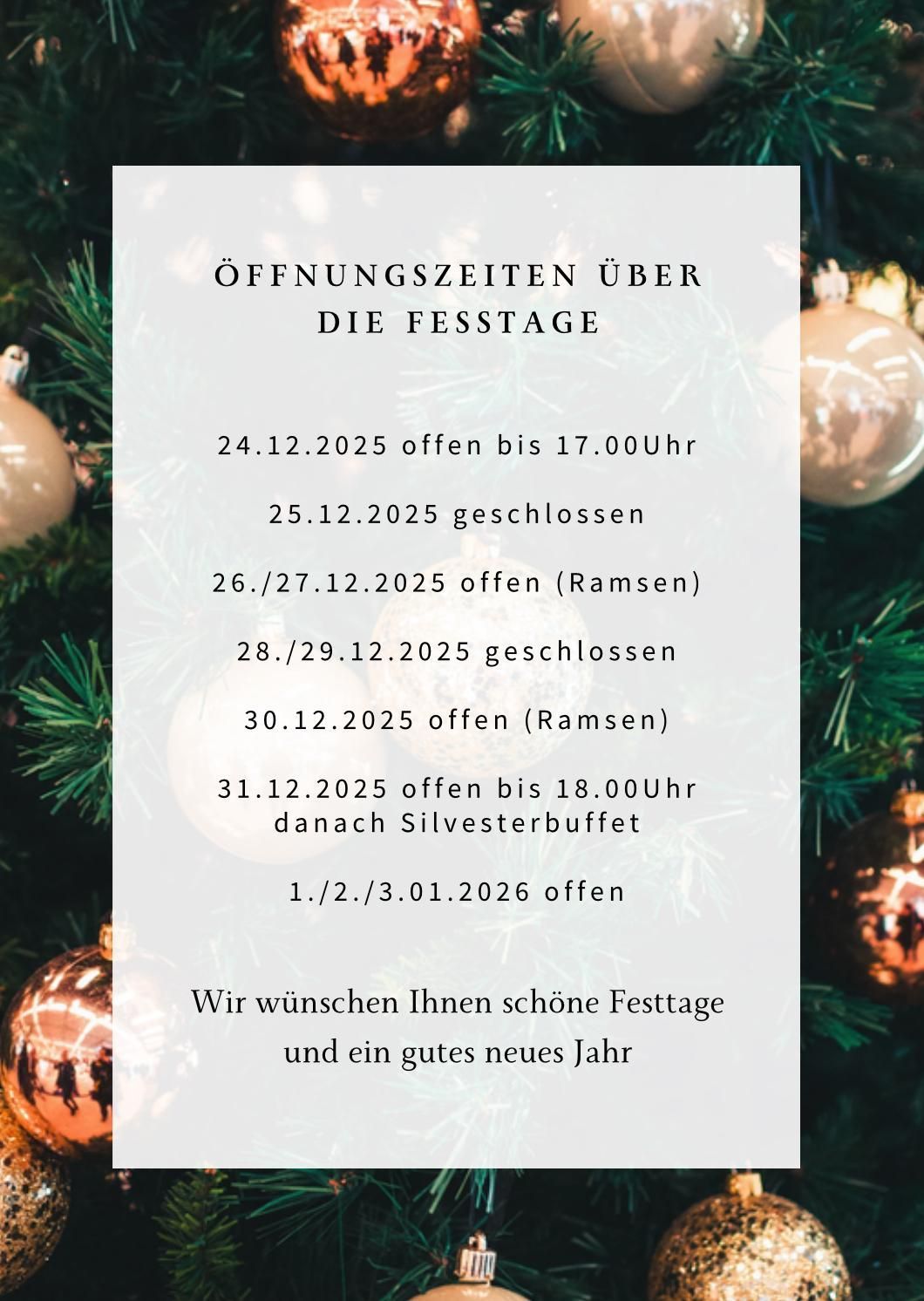 besonderen Öffnungszeiten über Weihnachten/Neujahr
